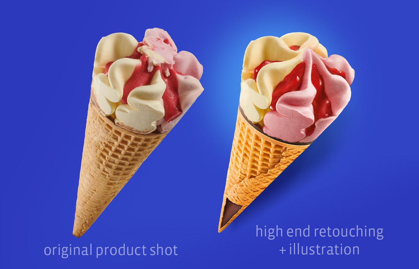 Illustrations haute définition réalisées d’après shoot produit, pour différentes gammes de crèmes glacées. --- High definition illustrations made from product shots, for different ranges of ice creams. Client : Aldi Agence : Aristid Clichy