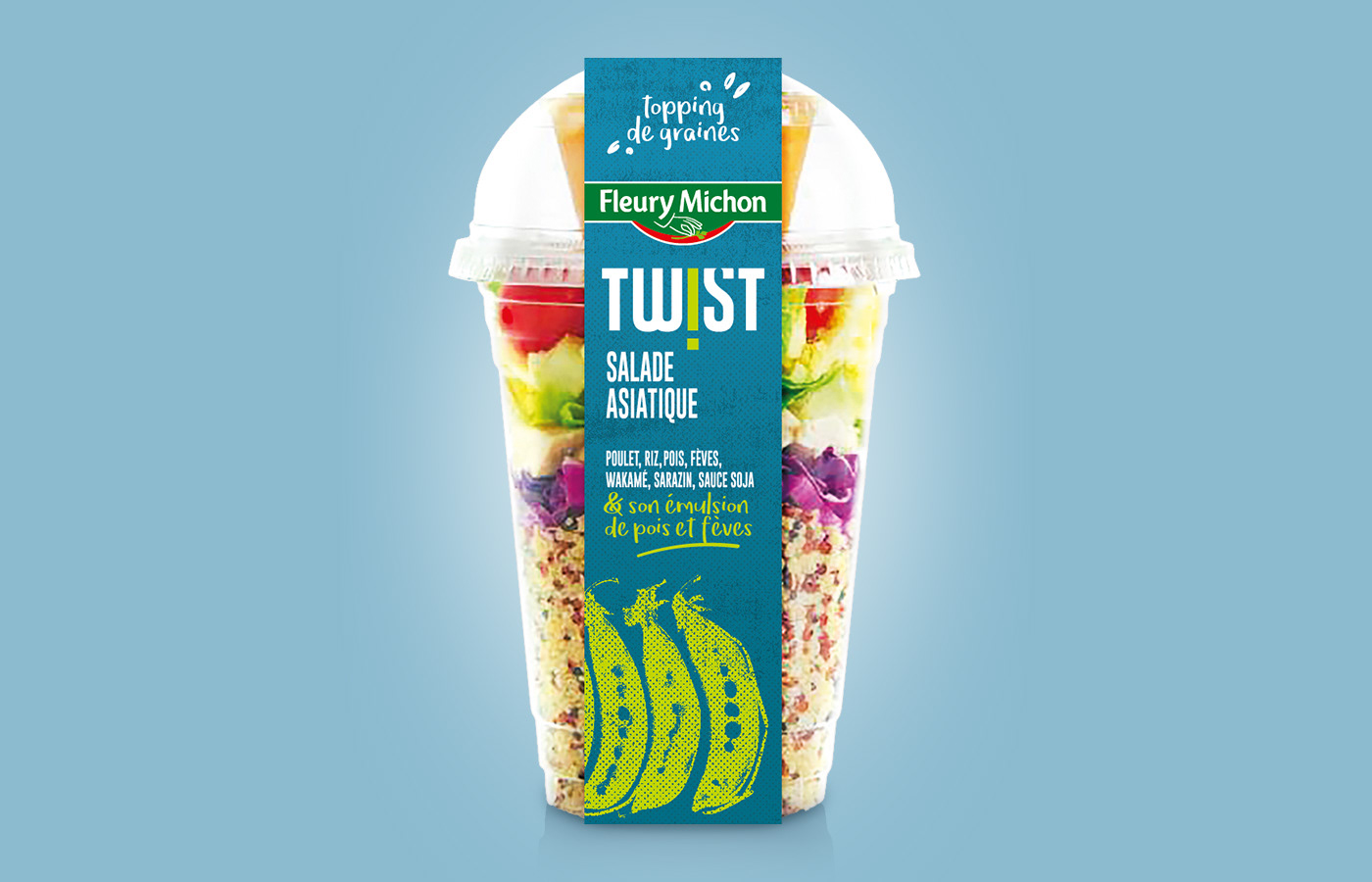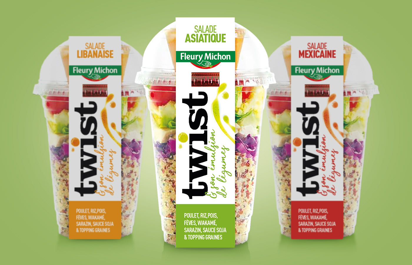 Étude pour tester un nouveau concept de salades composées au rayon frais. --- Study to test a new concept for fresh mixed salads. Marque / Client : Fleury Michon Agence : Carré Noir Paris